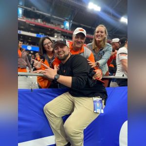 Coach Brent Zdebski pictured with parents, Wendy and Mike Zdebski and fiancee Whitney at Play Station Fiesta Bowl. Zdebski was recently named an assistant football coach at The Ohio State University. PHOTO Submitted.